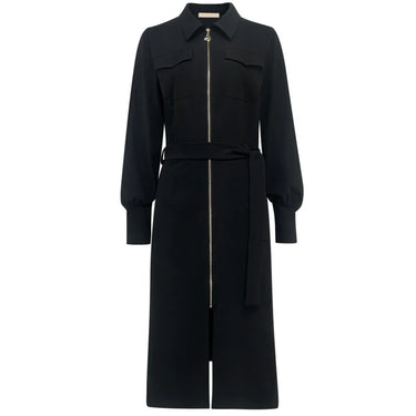 Een prachtige jurk van Triple Nine. De jurk met kraag, lange mouwen en klepzakken op de borst. Ook heeft de jurk een lange rits en een ceintuur in dezelfde stof. Dit item van top kwaliteit travelstof valt ruim, kies een maat kleiner. De lengte van de jurk is 126 cm lang, en de lengte van de split is 30 cm diep. S = 38. Borstomvang in cm zonder dat de stof opgerekt is:
