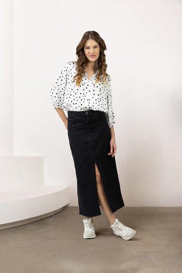 Deze satijnen blouse van Label Dot representeert de definitie van een levendige stippenprint! Dit geeft niet alleen je outfit, maar ook je humeur een boost. Het model is afgewerkt met een vrouwelijke V-hals en driekwartmouwen met elastische boorden. Materiaal: 100% Polyester.