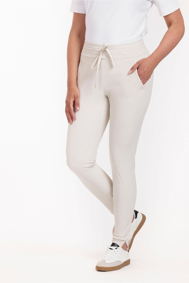 De Stairdown trousers kan niet meer ontbreken in de basiscollectie van Studio Anneloes. De donkerblauwe broek heeft een luxe uitstraling, wat onder andere door de zakverwerking en de Heavy travelstof komt. Verder herken je dit item aan de splitjes in de pijpen, een drawstring in de tailleband, steekzakken voor en faux paspelzakken achter.