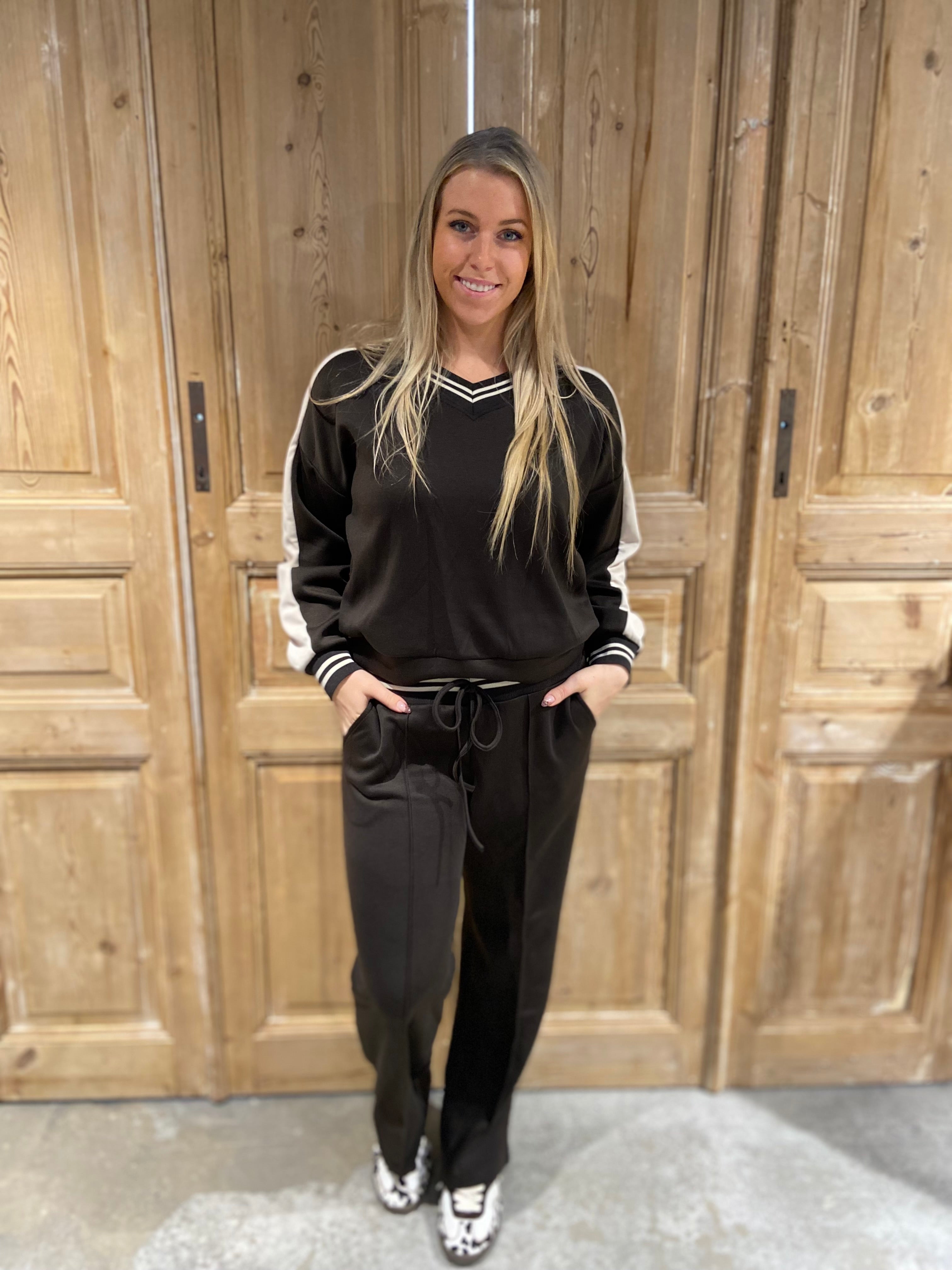 De broek heeft een mooie bies langs de boord en dus NIET langs de zijkant van de broek.