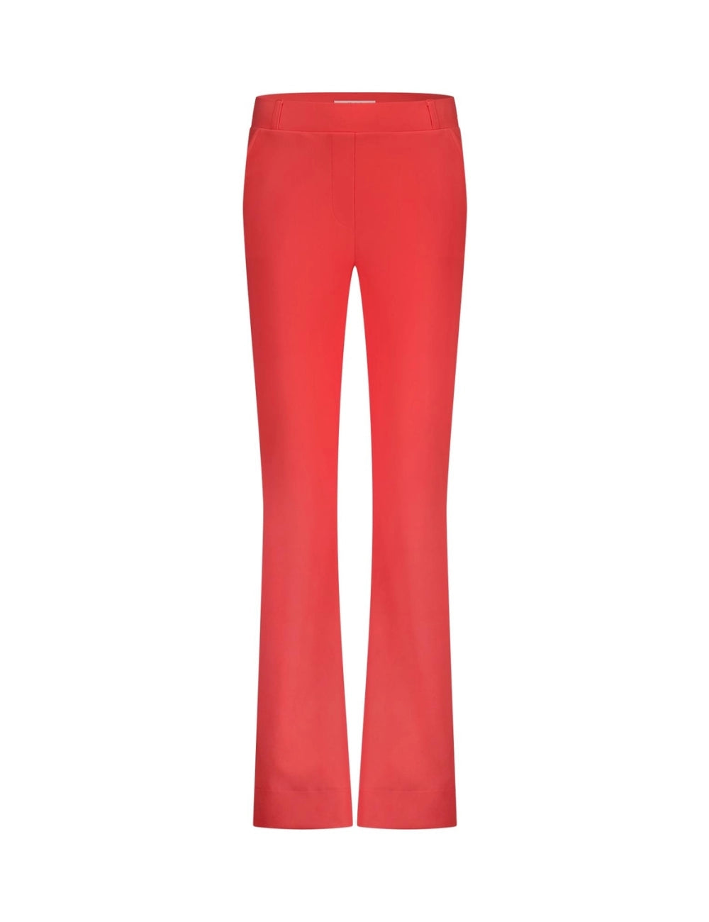 Deze damesbroek combineert stijl met comfort dankzij het flared model en de stevige bonded travel stof, die een flatterende pasvorm biedt en oneffenheden camoufleert.
