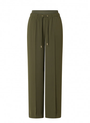 Deze gladde pantalon heeft een comfortabele loose fit en een elastische tailleband met een subtiel detail voor extra draagcomfort. De naad over het middenbeen geeft een mooi silhouet. Samenstelling 100% Polyester