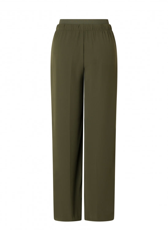 Deze gladde pantalon heeft een comfortabele loose fit en een elastische tailleband met een subtiel detail voor extra draagcomfort. De naad over het middenbeen geeft een mooi silhouet.