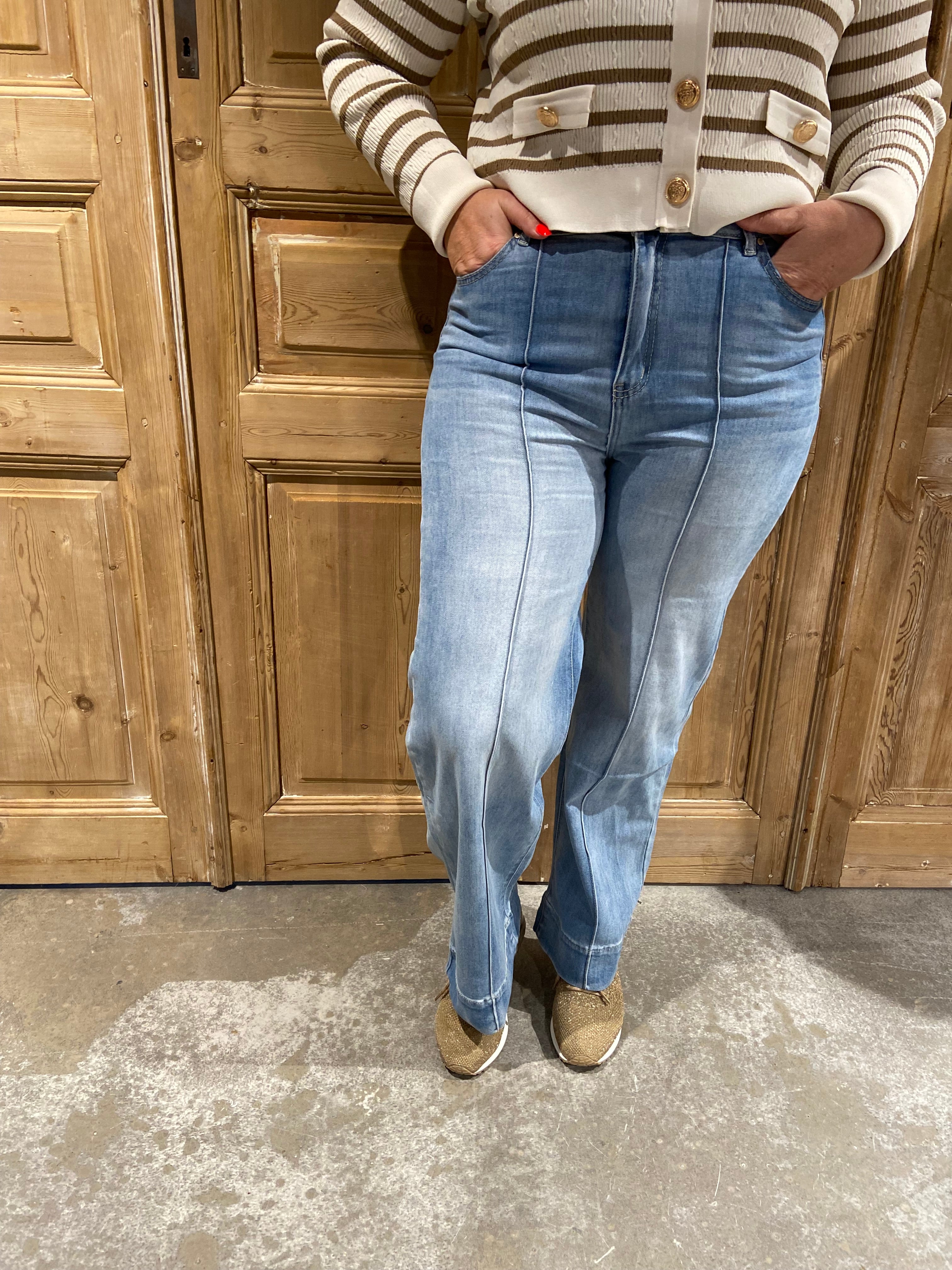 De broek is in de nieuwe zomerlengte en dus iets op/boven de enkel. Sandras is 1,78 dus hier zou je je zelf mee kunnen vergelijken.