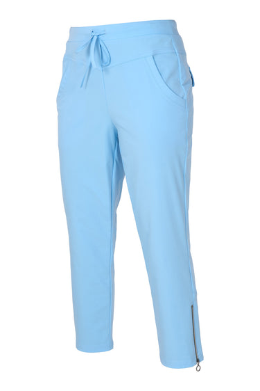7/8 broek van Dreamstar in travel kwaliteit met steekzakken, klepzakken aan de achterzijde, ritsen in de pijpen en een elastische tailleband voorzien van trekkoord. Materiaal: Polyamide 87%| elastan 13%
