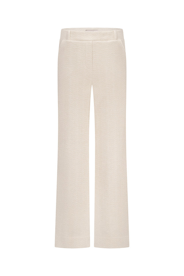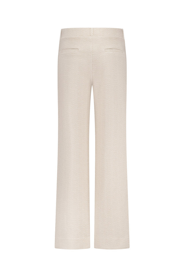 De Lexie tweed trousers van Studio Anneloes combineert het comfort van de bekende Lexie broek met een luxueuze, feestelijke uitstraling. De klassieke tweedstructuur in Ecru en Latte krijgt een subtiele gouden glans dankzij de ingeweven metallic draad. Met de wide fit en elastische tailleband is deze broek stijlvol en comfortabel voor lange dagen of speciale gelegenheden.