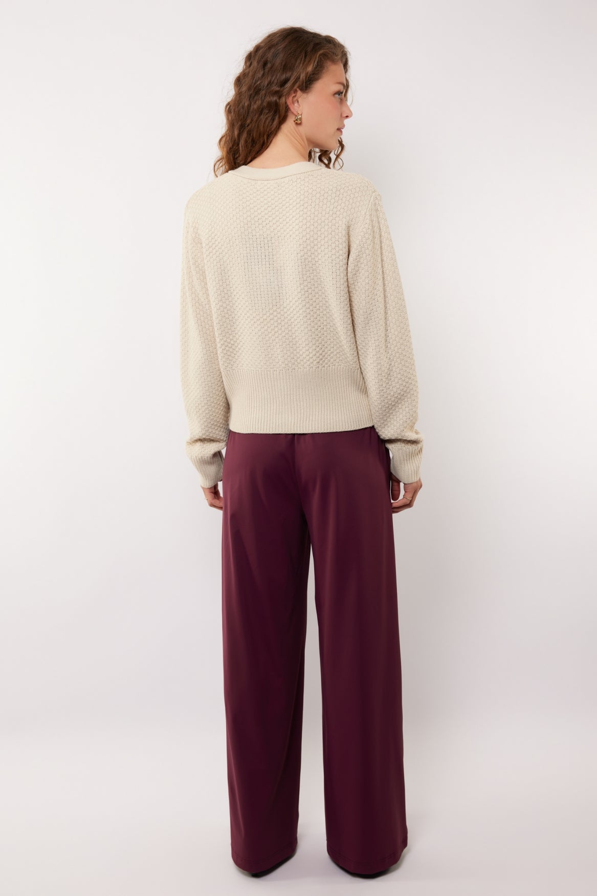 De Marbella broek is een stijlvolle essential voor elke garderobe. Gemaakt van comfortabele Yoga stof, biedt deze broek ultieme bewegingsvrijheid zonder in te leveren op elegantie. De wijde pijpen en elastische tailleband voor een flatterende pasvorm en een moeiteloze uitstraling. Combineer met een blouse of knit voor een verfijnde, alledaagse look.