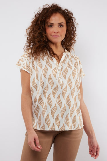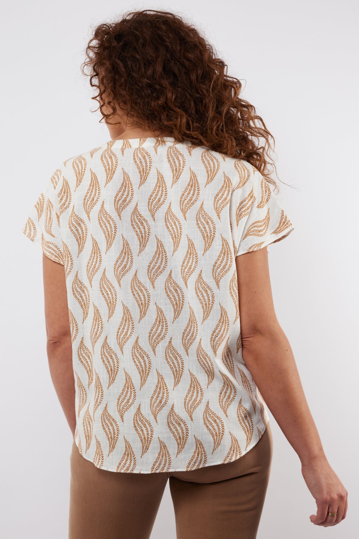De Silla top is trendy en comfortabel. De top heeft een subtiele V-hals met een knoopdetail en korte vlindermouwen. De top heeft een aansluitende pasvorm.