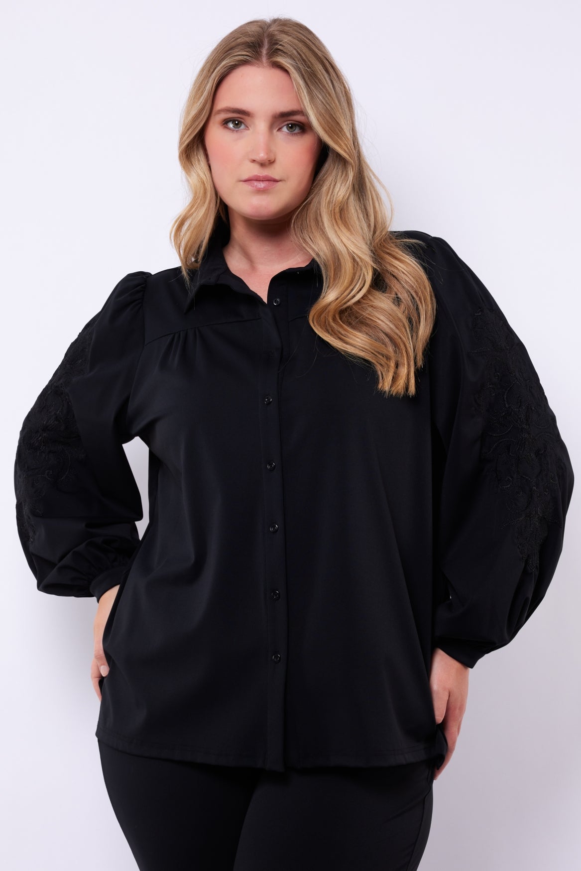 De Ariana blouse straalt elegantie uit met haar verfijnde details. De ballonmouwen zijn subtiel afgewerkt met borduursel, wat de blouse een vrouwelijke en stijlvolle touch geeft. Dankzij de klassieke kraag en knoopsluiting combineer je dit item moeiteloos van een casual look tot een meer geklede outfit.