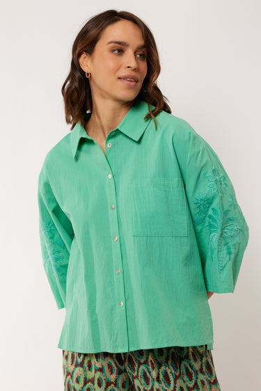 De Isaline Blouse is een verfijnde en veelzijdige blouse met een elegante uitstraling. Het ontwerp bevat subtiele details zoals een klassieke kraag en een knoopsluiting, perfect geschikt voor zowel casual als formele gelegenheden. Materiaal: 100% Katoen.