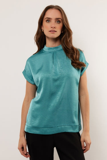 De Karlien Top is een stijlvolle en veelzijdige top met een verfijnde uitstraling. Met zijn subtiele opstaande kraag en korte mouwtjes is deze top perfect voor zowel casual als meer formele gelegenheden. Het zachte materiaal voelt comfortabel aan en geeft een elegante touch aan elke outfit.