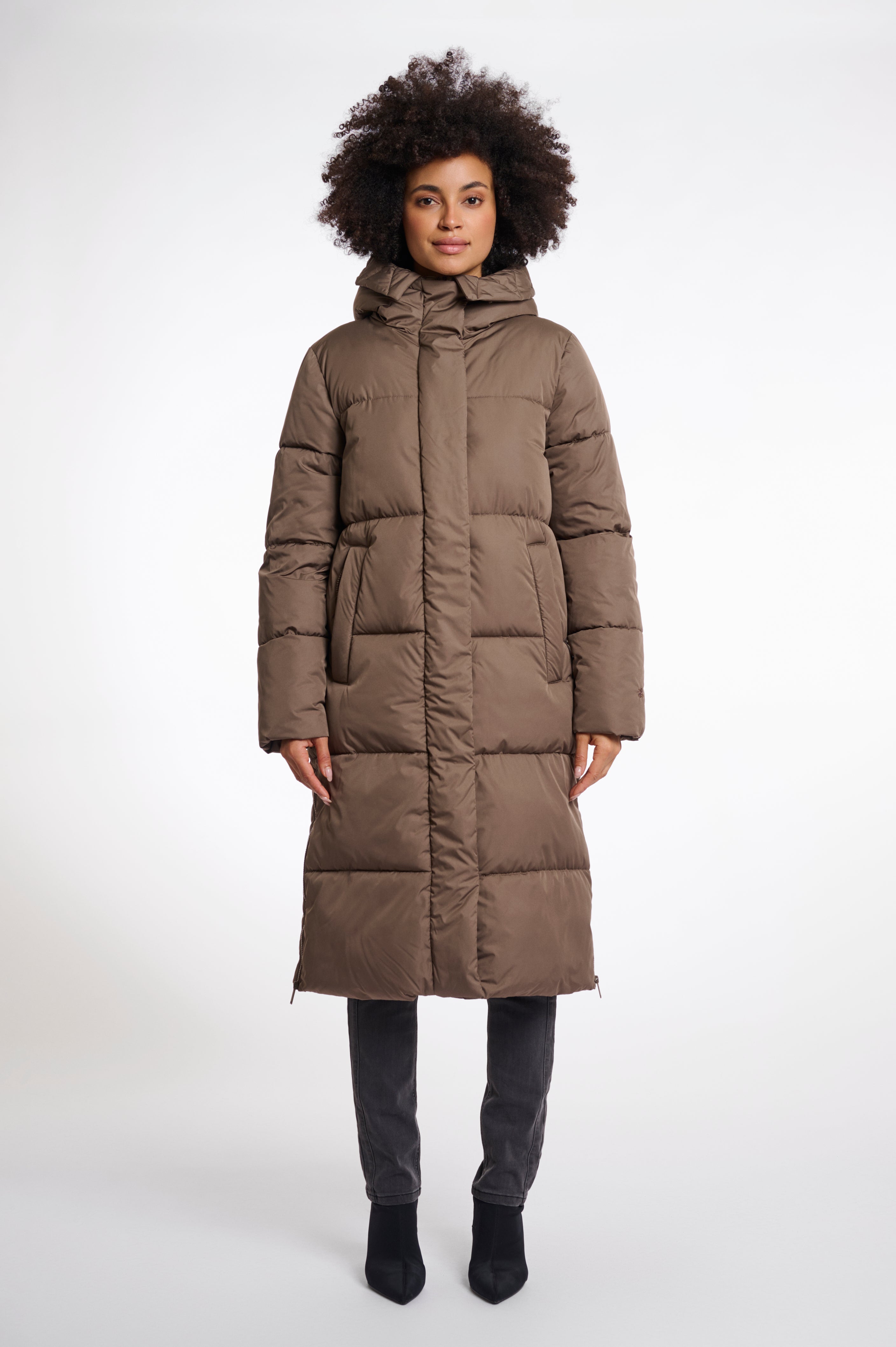 Ontdek deze lange gewatteerde jas - een veelzijdige en comfortabele optie voor buitenkleding in de koudere maanden. Deze jas valt op door het opvallende grafische design aan de binnenkant, dat een uniek tintje geeft aan een klassiek silhouet. Uitgerust met een rits- en drukknoopsluiting, een capuchon met trekkoord, zijzakken met ritsen, zijsplitten met ritsen en een binnenzak, combineert deze jas naadloos stijl met functionaliteit voor je wintergarderobe.