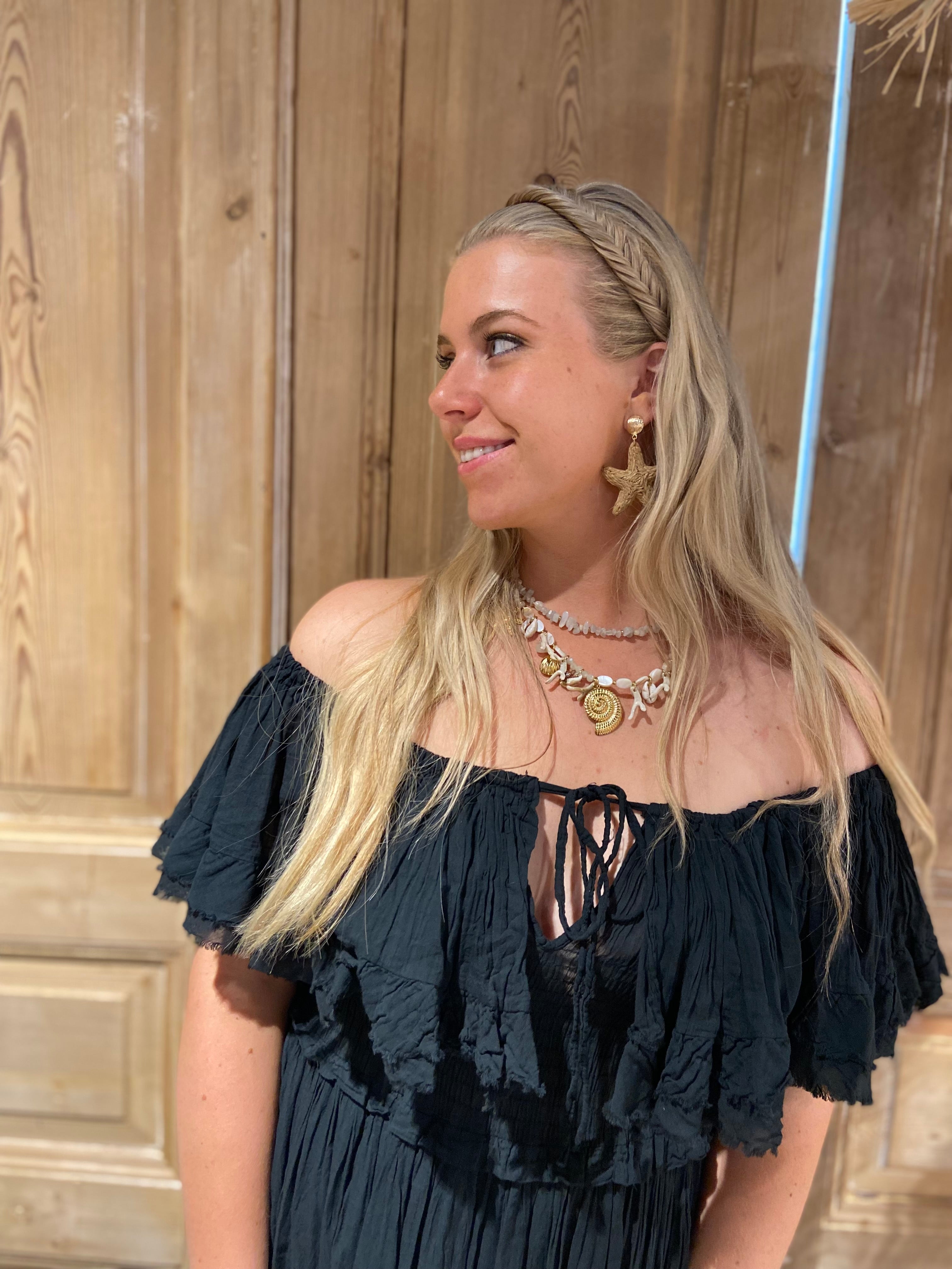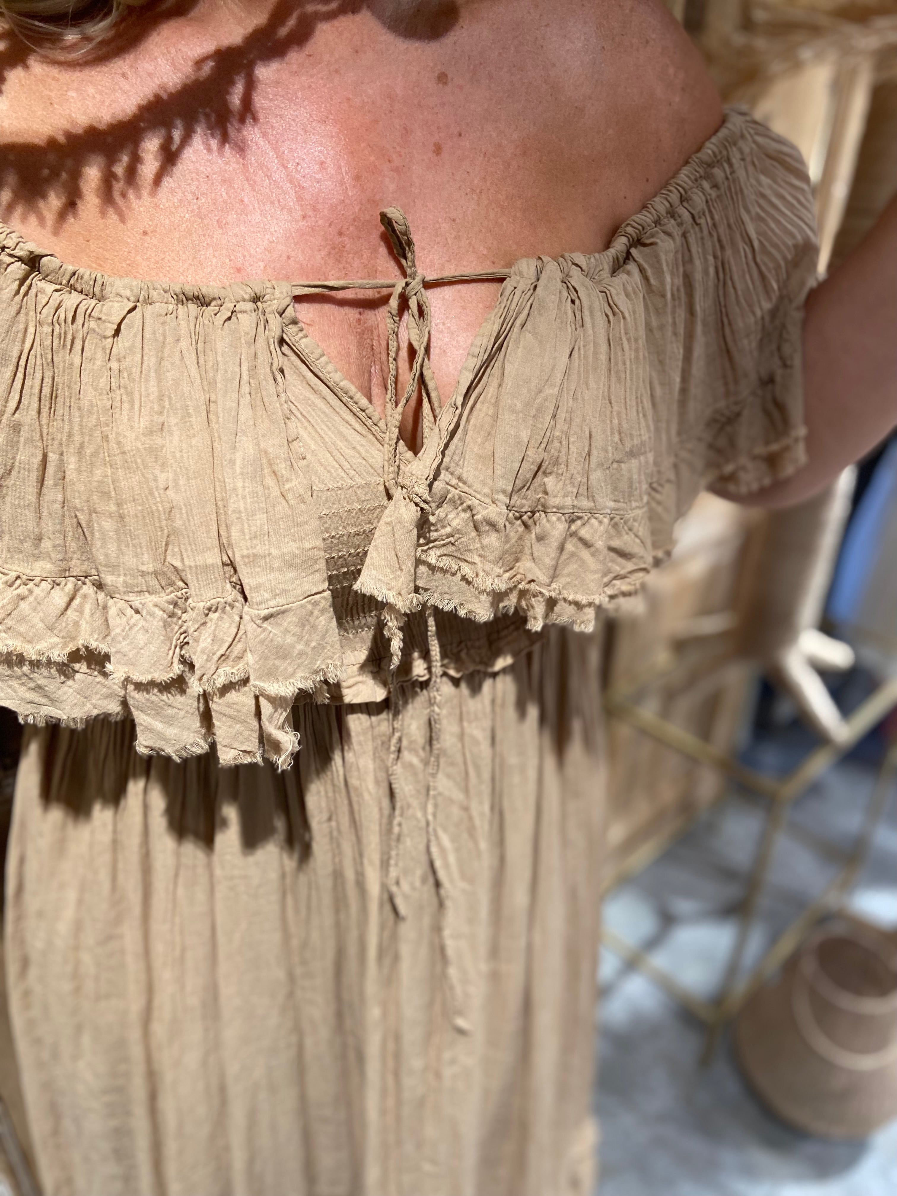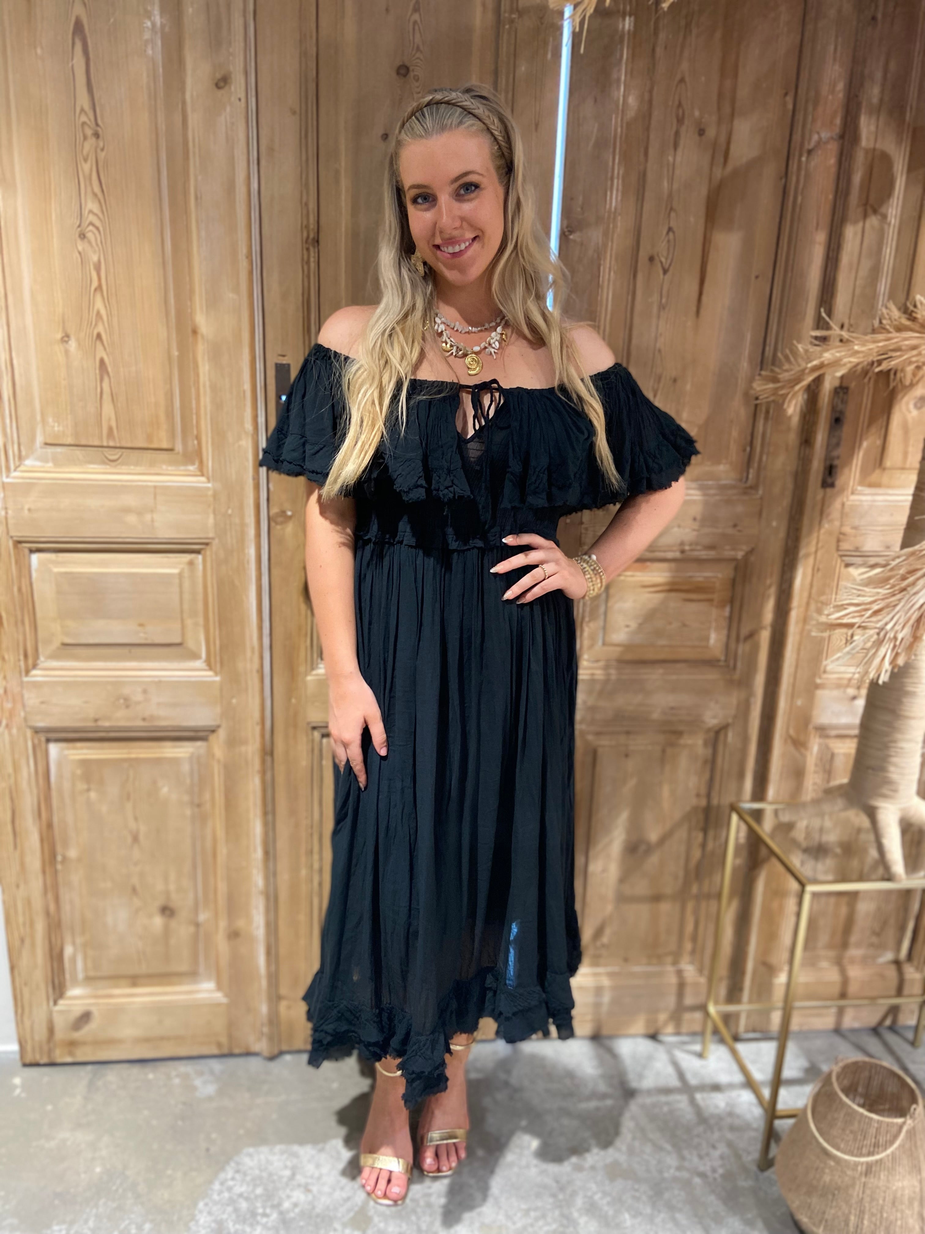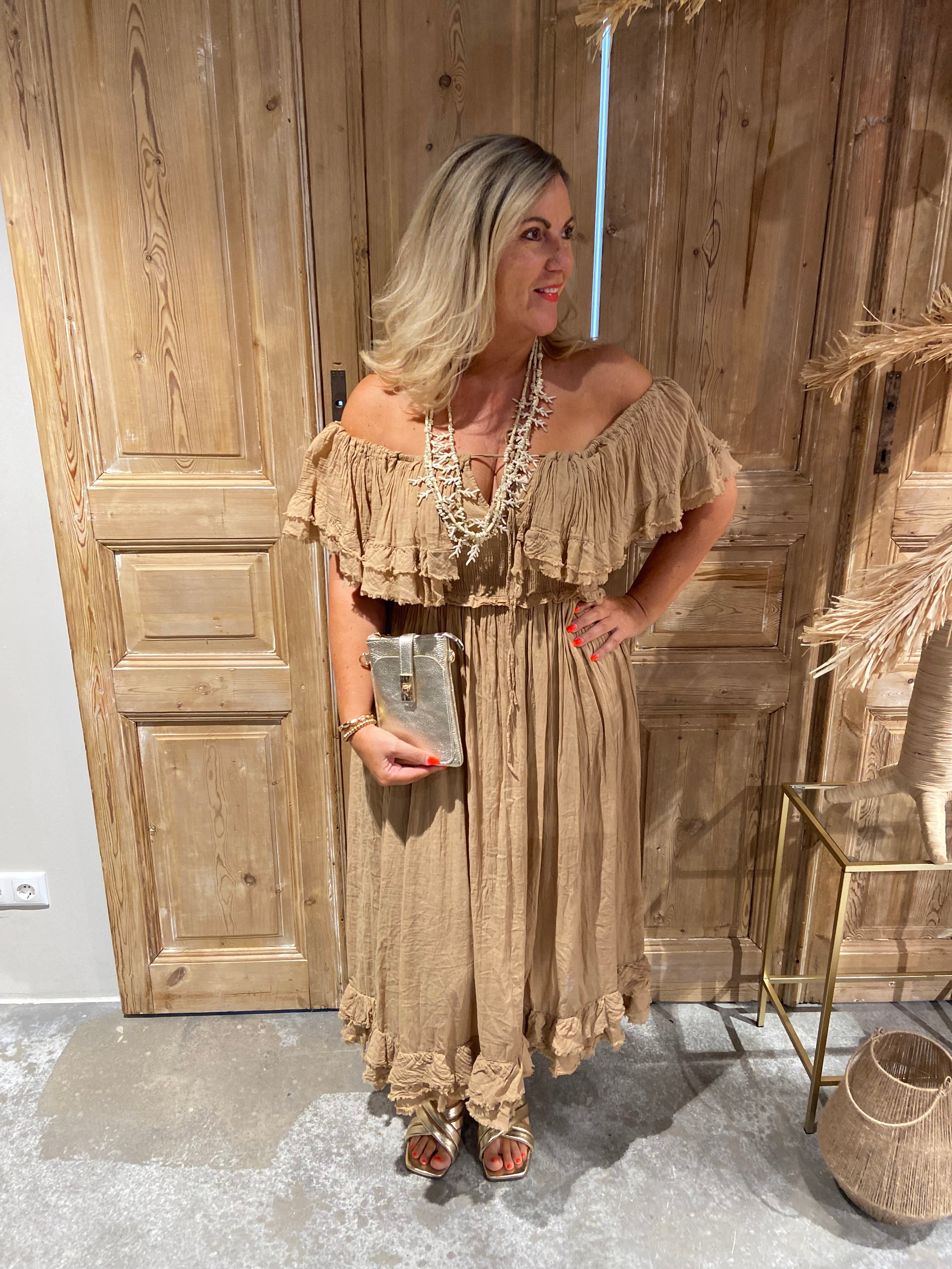 Deze mooie en vooral luchtige jurk past van maat 38 t/m 46.