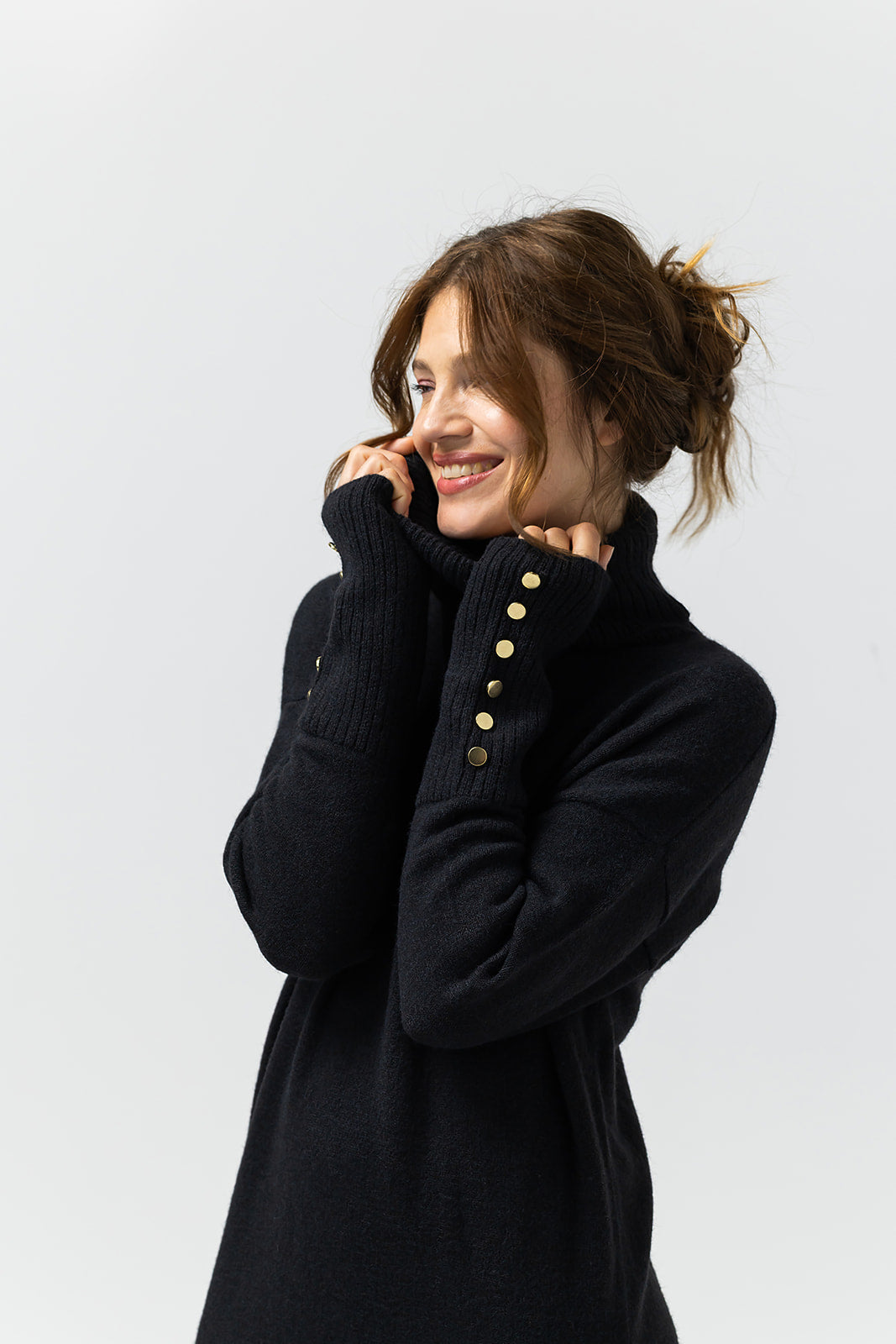 Gebreid midi-jurk met col