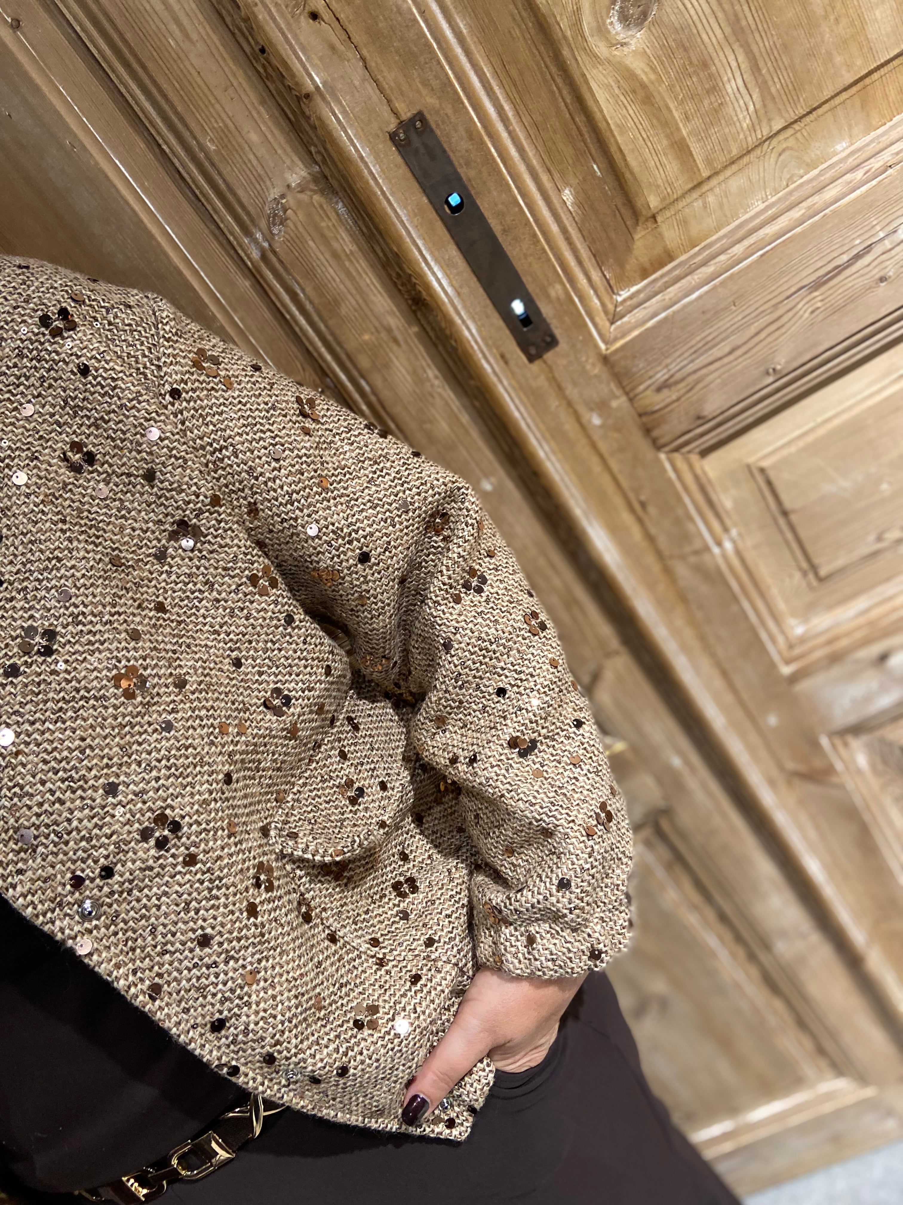 Deze mooie bomber valt groot! Sandras draagt op de foto de maat S/M.