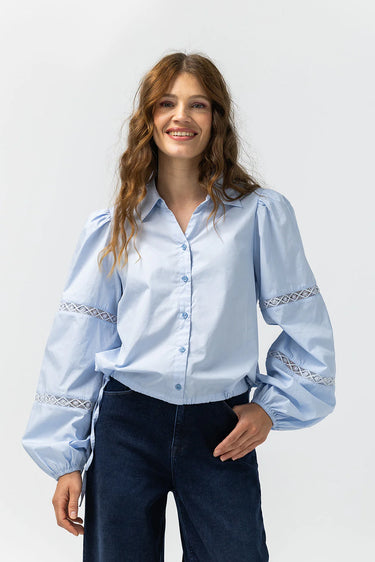 Op zoek naar een tijdloze blikvanger? Deze katoenen blouse met pofmouwen en subtiele kantdetails straalt vrouwelijke charme uit. Dankzij de tunnelceintuur aan de onderkant pas je de wijdte eenvoudig aan. De elastische mouwboorden zorgen voor extra comfort.