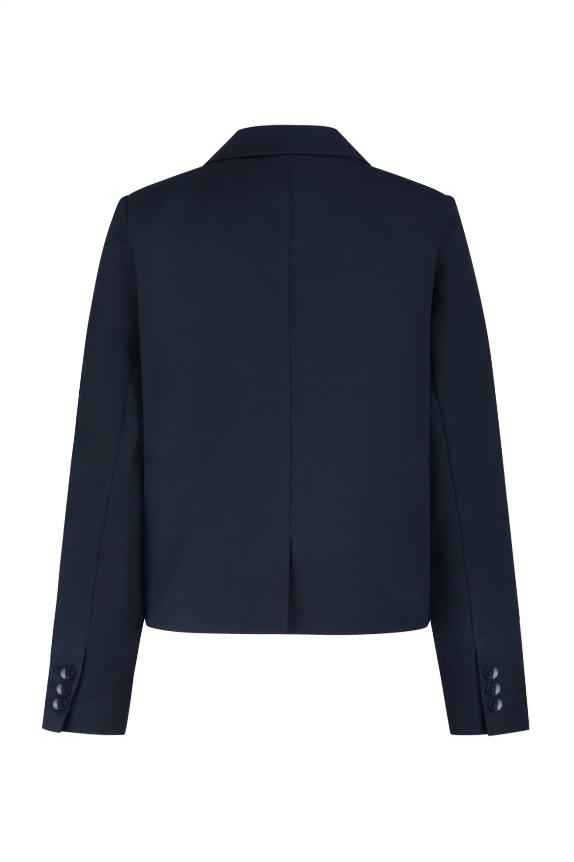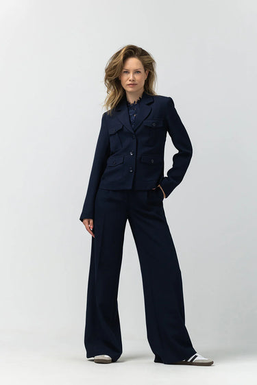 Deze blazer krijgt een sportieve twist door de praktische zakken op het voorpand, de brede reverskraag en het kleine splitje achter. De soepel vallende pasvorm en mooie donkerblauwe kleur maakt ‘m ideaal voor een casual, maar chique look.
