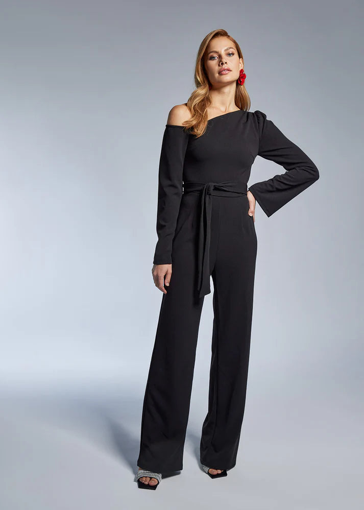 De jumpsuit van Freebird is gemaakt van een comfortabele crêpe jersey kwaliteit met stretch, waardoor hij soepel valt en een flatterende pasvorm heeft. De asymmetrische schouderlijn geeft het ontwerp een moderne en stijlvolle uitstraling. De tailleband die je zelf kunt strikken accentueert de taille en zorgt voor een vrouwelijk silhouet. Perfect voor zowel een diner als een feestelijke gelegenheid.