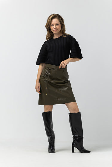 Tijd voor iets unieks! Deze gebreide top met ronde hals en uitlopende halflange mouw heeft een opvallende structuur. Het ribbreisel is verticaal op het lijfje en horizontaal op de mouwen, wat de top een dynamische en eigentijdse uitstraling geeft.