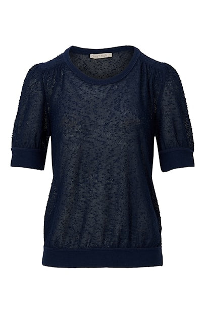 Shirt van Dreamstar in een all-over dessin met driekwart mouwen, V-hals, kraag en een elastische zoom aan de onderzijde. Materiaal: Polyester 70%| viscose 30%