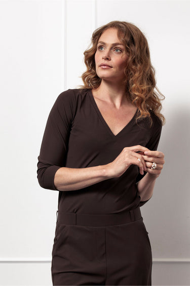 De Emma top is een verfijnde basic met een vrouwelijke twist. Dankzij de diepe v-hals, driekwart mouwen en soepele Light Travelstof is dit een item dat zowel comfortabel zit als elegant oogt. Een veelzijdige essential voor elke dag.