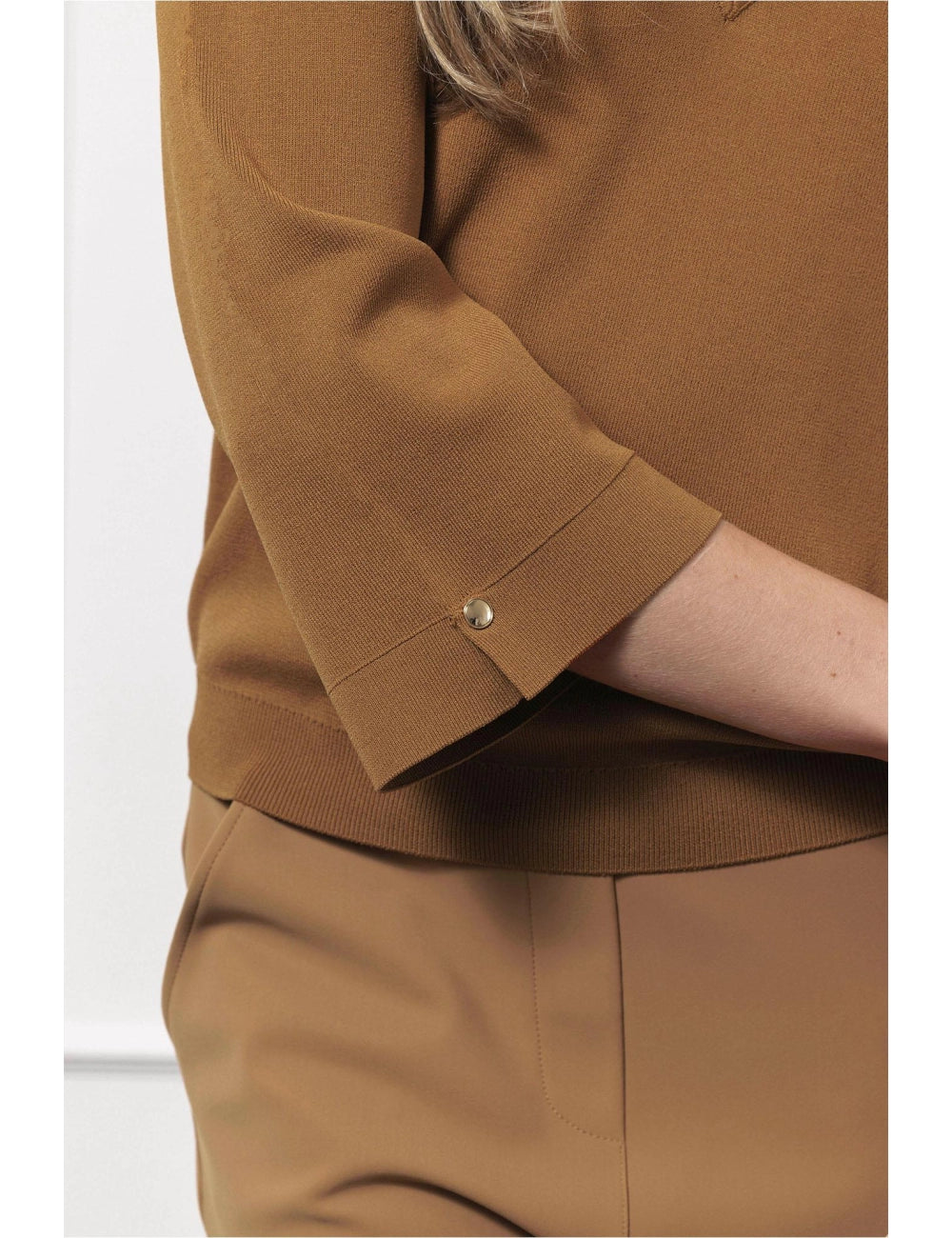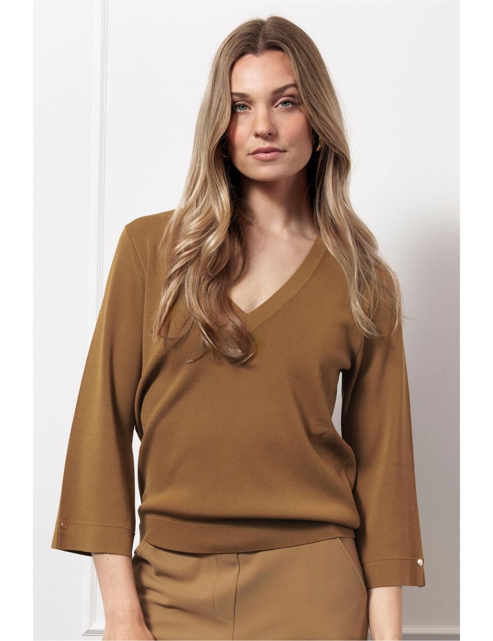 De Linay 3/4 sleeve pullover van Studio Anneloes is een stijlvolle basic met een moderne twist. De kleur Caramel geeft deze trui warmte en veelzijdigheid. Dankzij de regular fit en de soepele Travel Knit voelt hij comfortabel en luchtig, de hele dag door.