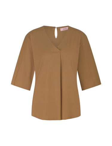 De Marly top van Studio Anneloes is een veelzijdige top die comfort en stijl moeiteloos combineert. De Light Travelstof voelt luchtig aan, terwijl de regular fit en het plooidetail zorgen voor een elegante uitstraling. De warme kleur Caramel maakt deze top een tijdloze aanvulling op je garderobe.