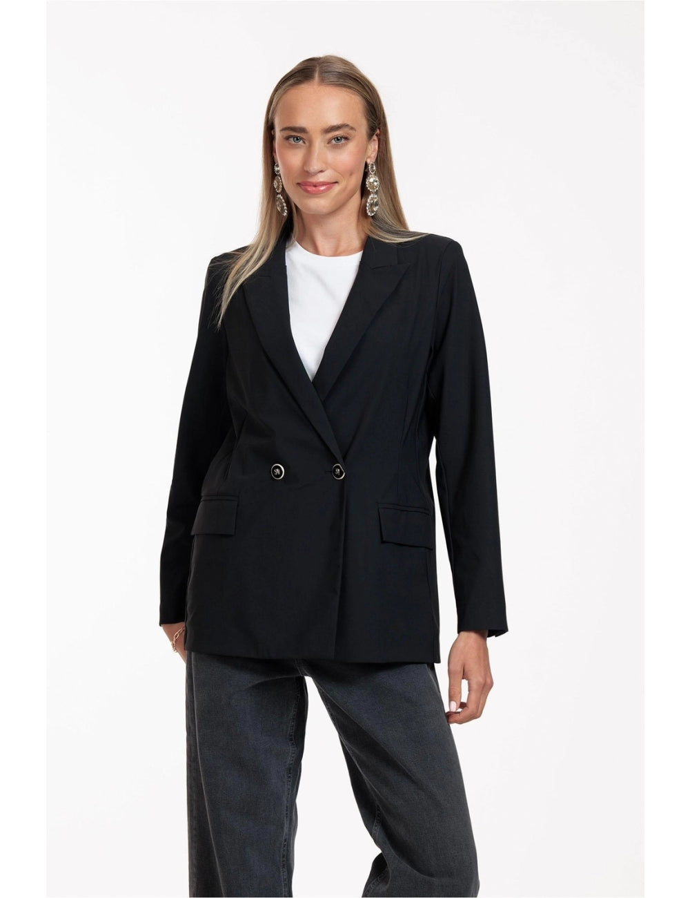 Maak kennis met de stijlvolle Noor blazer van Studio Anneloes, een must-have voor elke modebewuste vrouw. Deze elegante zwarte blazer is perfect voor de winter en voegt een vleugje klasse toe aan elke outfit.