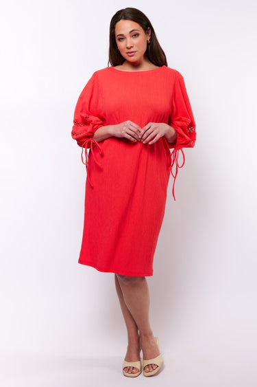 Imara Dress van Exxcellent is een is een luchtige zomerjurk met extra leuke details. Deze jurk in midi-lengte heeft uitlopende mouwen met opengewerkte banen en een strikje aan het aan de rand. Zo kun je de mouwen wijd dragen of laten poffen. Materiaal: 95% Polyester, 5% Elastaan