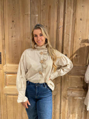 Deze mooie oversized blouse past van maat 40 t/m 46.