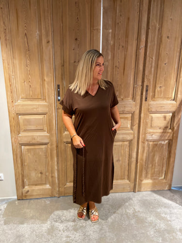 Deze mooie jurk past van maat 38 t/m 44. stofsamenstelling: 69% viscose 26% polyester 5% elastico