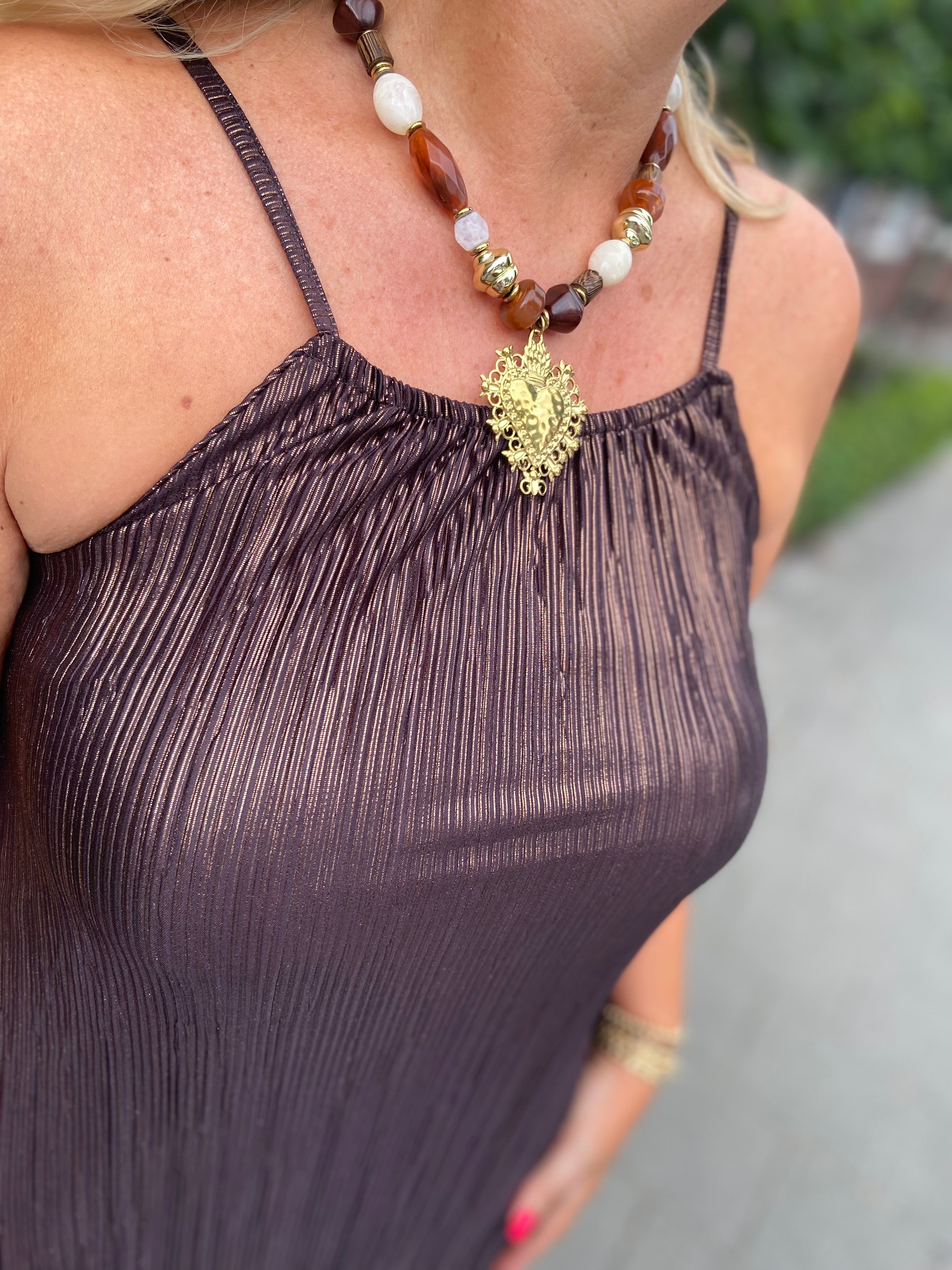 Ketting bruine stenen+hart
