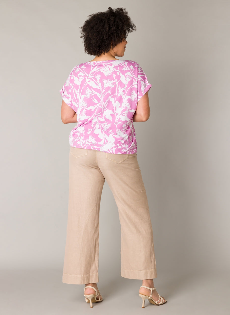 T-shirt met tropische bloemenprint in een zachte Ecovero Viscose met 4% Elastan. Dit shirt heeft een lekkere Comfort fit, een V-halslijn en korte mouwen met een kleine omslag.