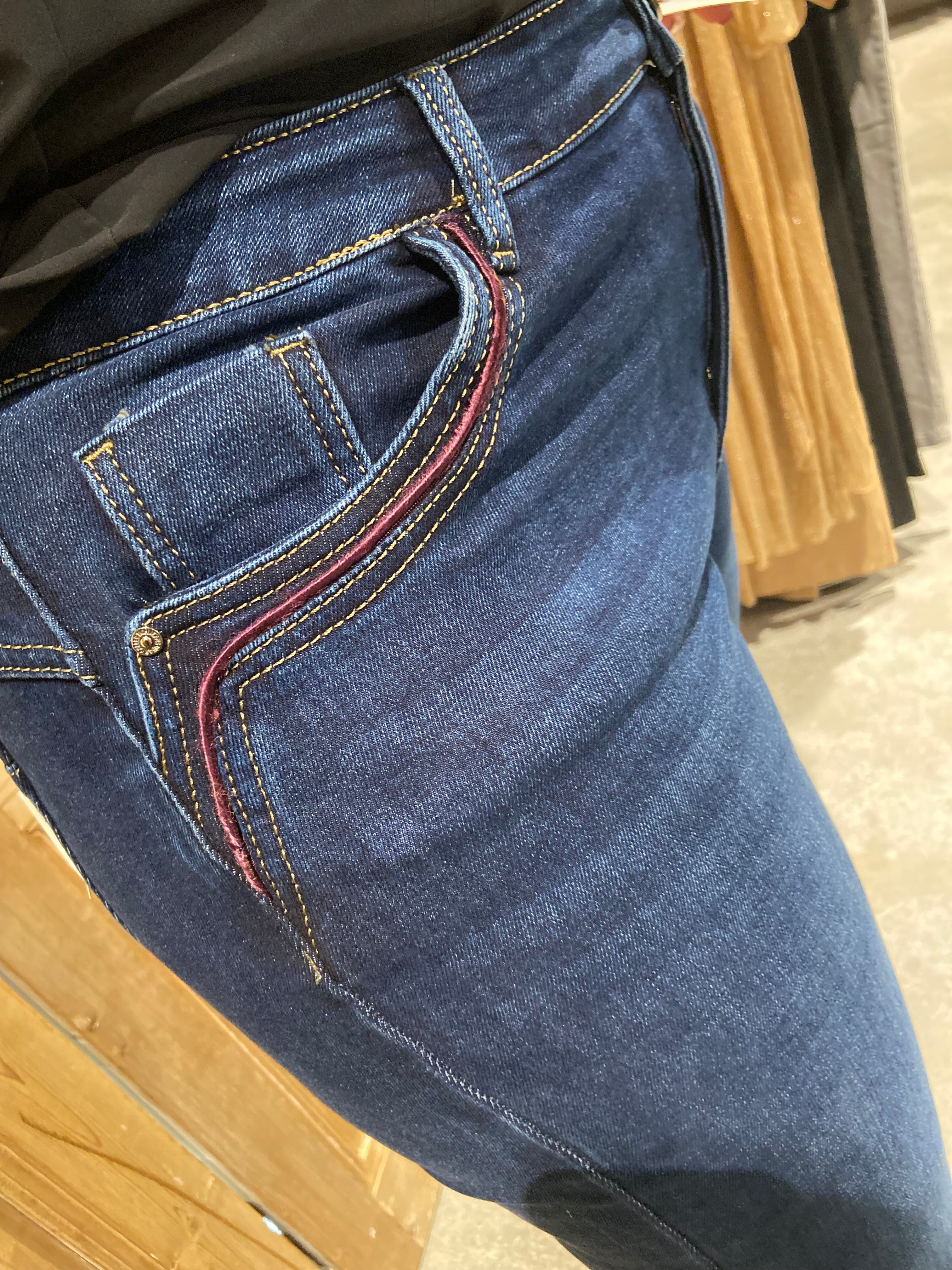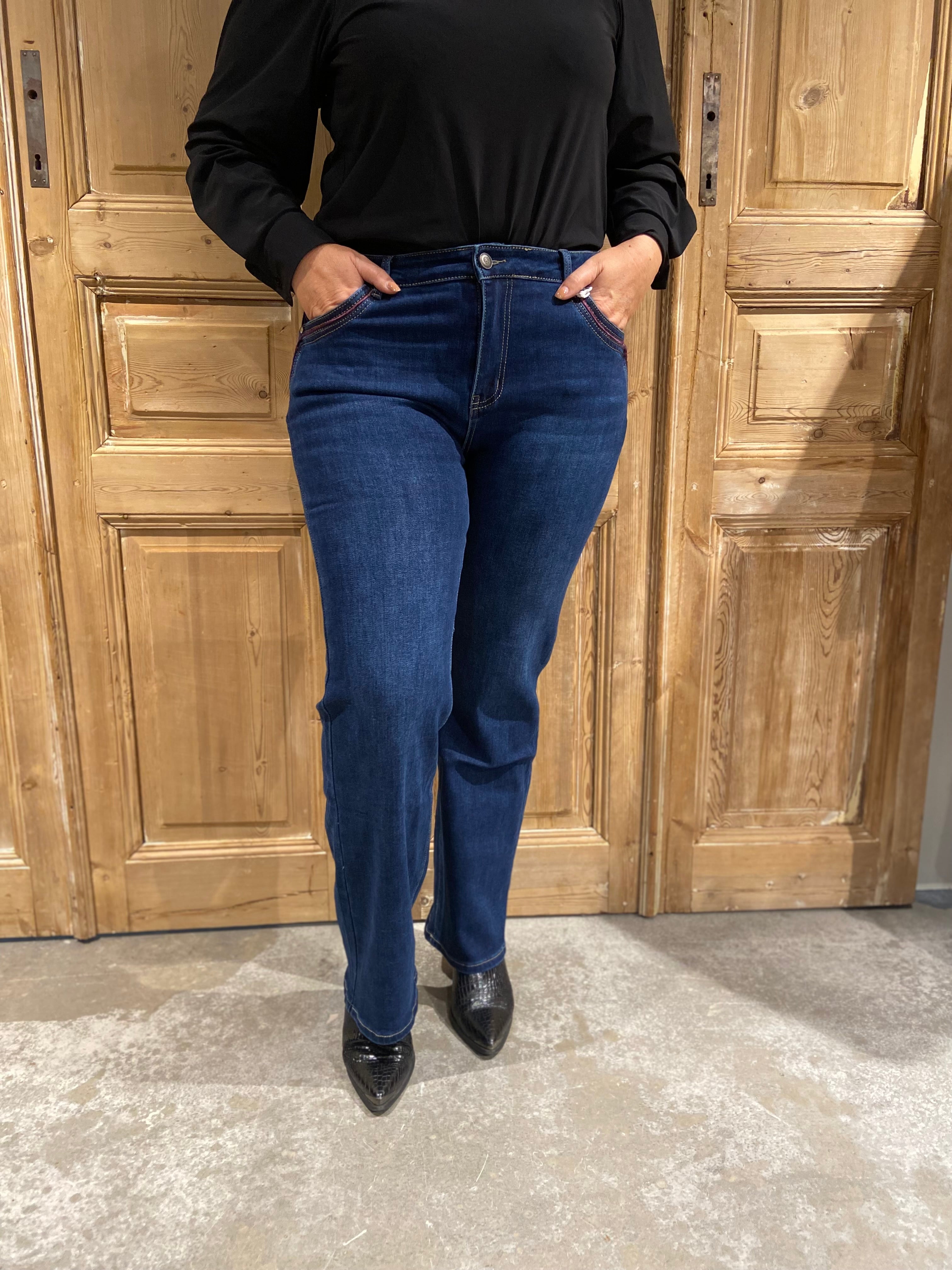 Deze rechte denim jeans van Karostar heeft een hele fijne pasvorm. Het is niet zomaar een spijkerbroek, het rode detail bij de zakken geeft een hele mooie toevoeging! Shop deze mooie jeans en meer leuke Karostar broeken bij Sandra's Boetiek.